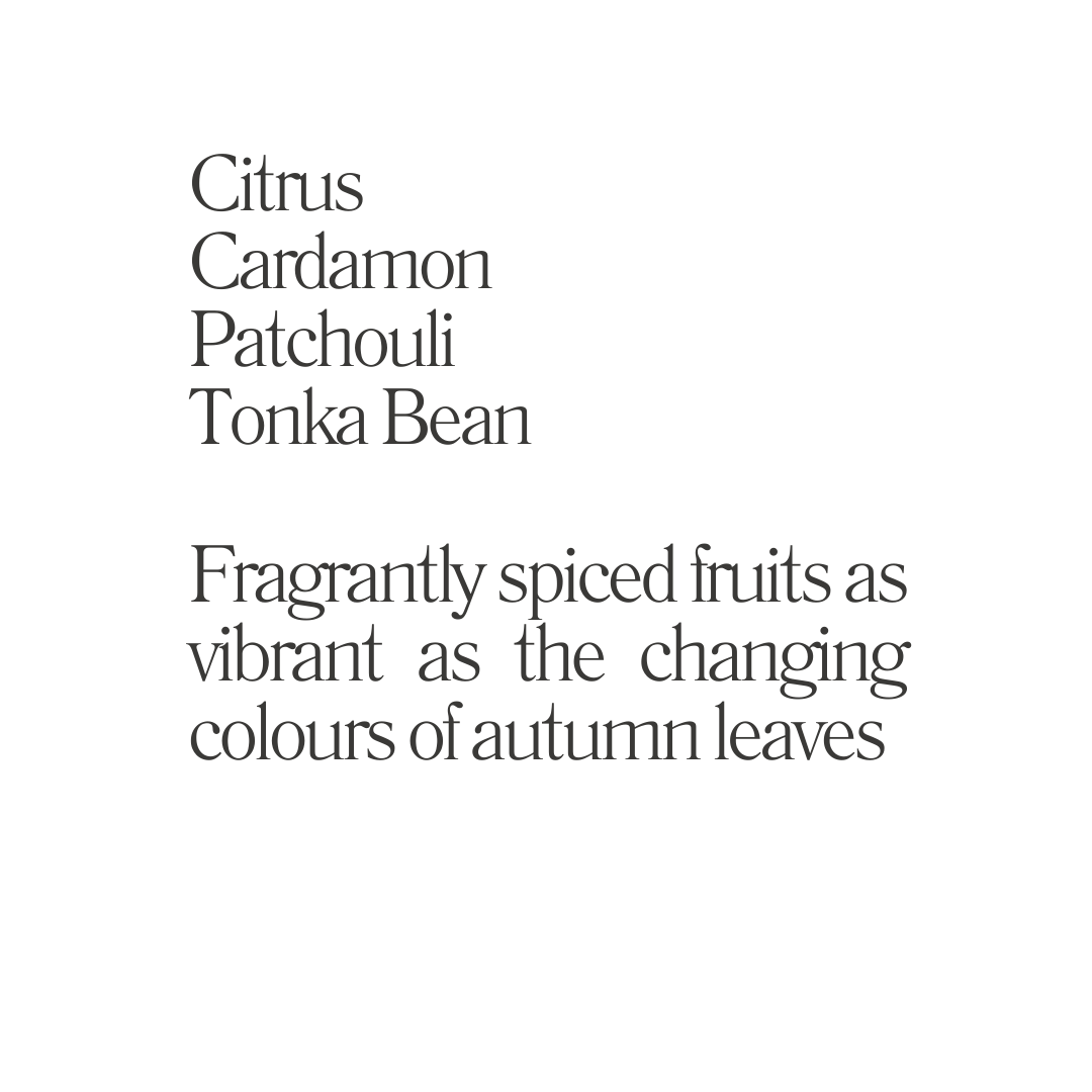 In France, the autumn is ‘The Return.’ A renaissance after the long summer, a time of optimism and renewal. As the evenings draw in and the leaves start to turn, we celebrate La Rentrée with mandarin orange, tonka and cinnamon combined into a warm citrus blend with hints of nutmeg and clove. This scent reminds us of the simple pleasures – nights in, welcoming rooms, lit fires, duvets and glowing candles